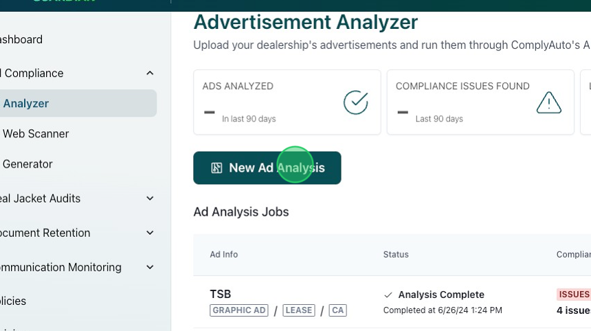 This article will walk you through the steps required to use ComplyAuto Guardian's Ad Analyzer.