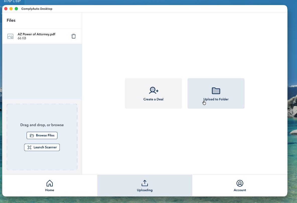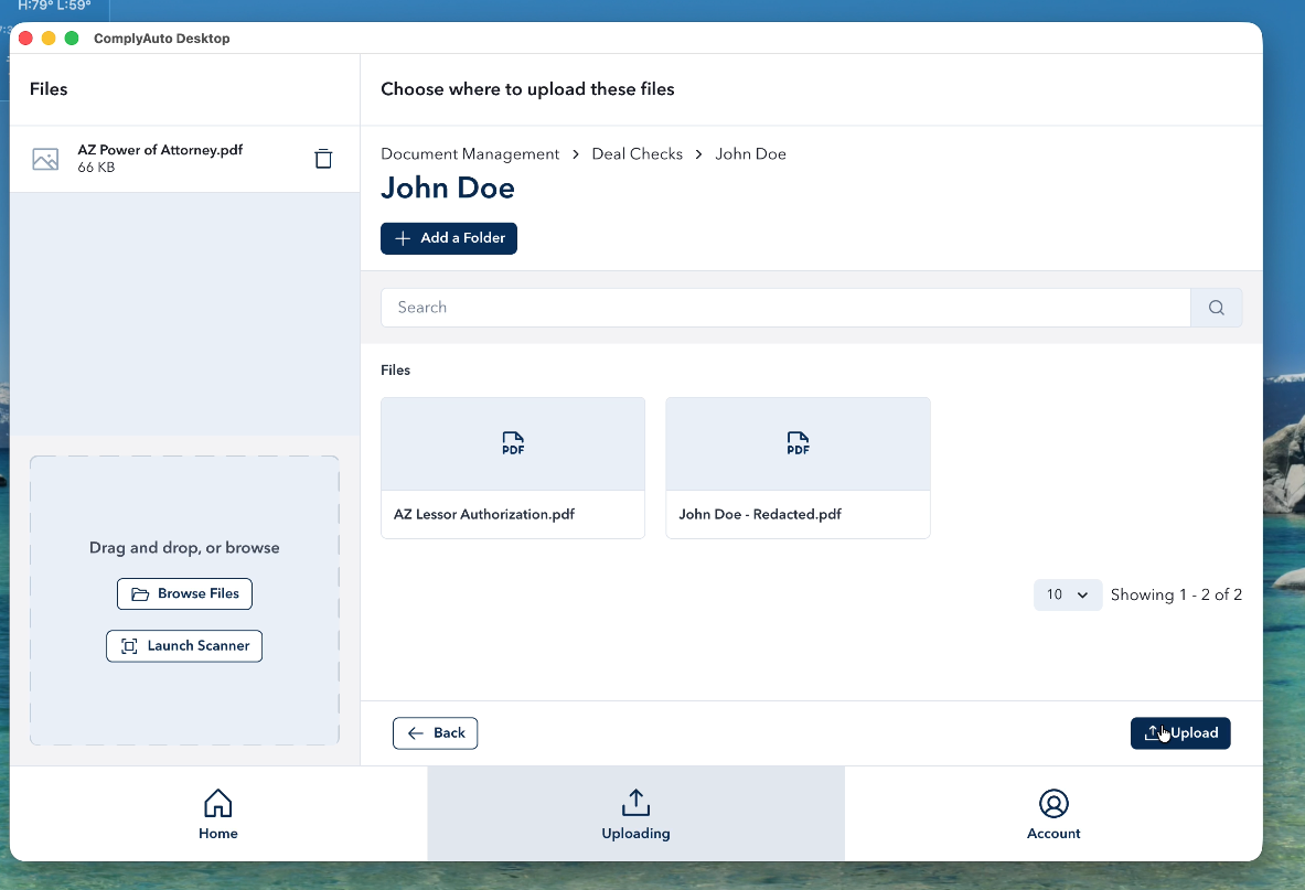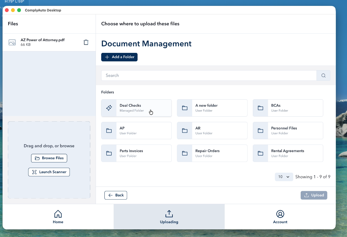 >Scan the document into the ComplyAuto Desktop Application or do >Print >'Send to DealCheck'